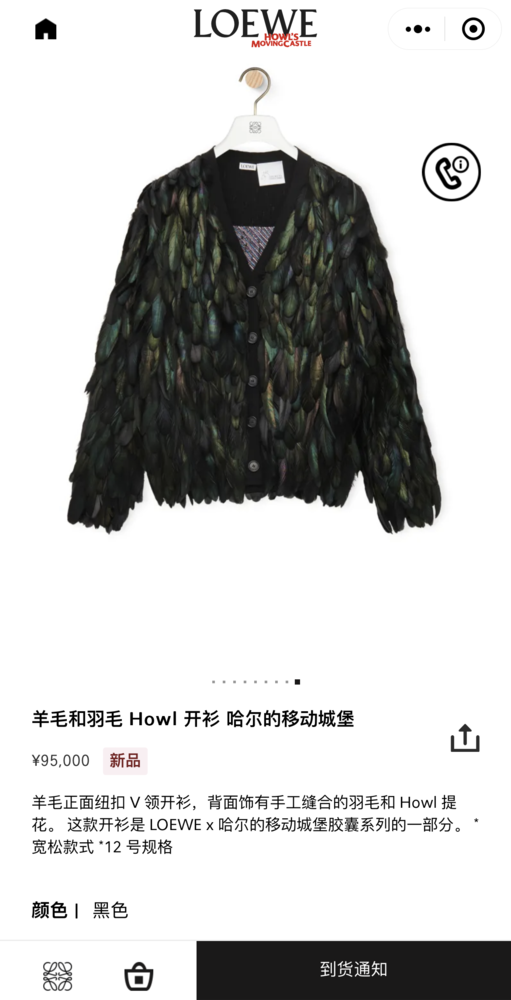 联名的效果是显然的,这件售价¥95000的开衫火速售空。