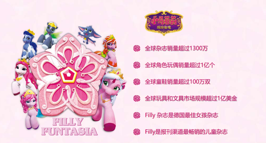 「小马菲莉」品牌源于2006年诞生于欧洲的“Filly”的形象,Filly在欧洲家喻户晓,且在全球具有广泛认知基础,依此建立了庞大的用户群体和消费市场。